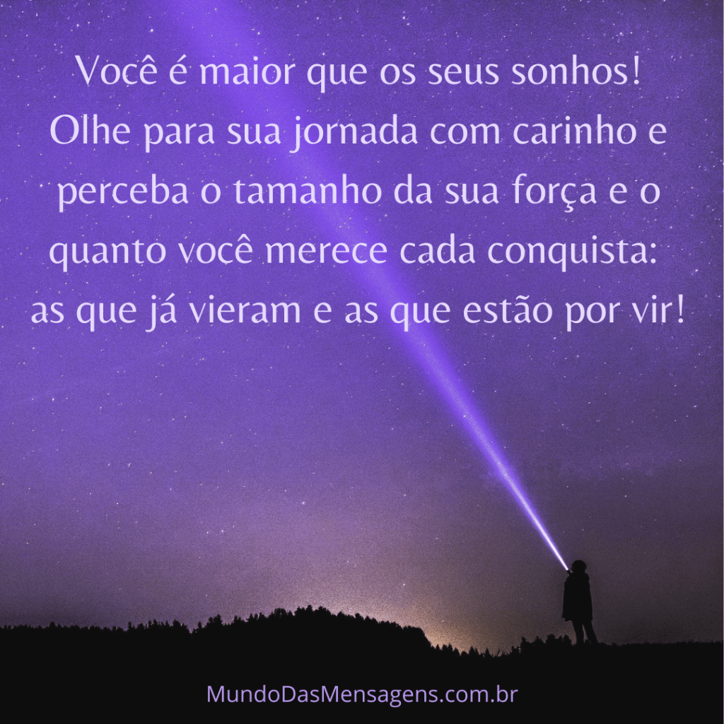 Você é maior que os seus sonhos! Você é maior que os seus sonhos! Olhe para sua jornada com carinho e perceba o tamanho da sua força e o quanto você merece cada conquista: as que já vieram e as que estão por vir! Compartilhe essa mensagem com alguém especial: Clique para compartilhar no WhatsApp(abre em nova janela) WhatsApp Clique para compartilhar no Facebook(abre em nova janela) Facebook Clique para compartilhar no X(abre em nova janela) 18+ Clique para compartilhar no Pinterest(abre em nova janela) Pinterest Clique para compartilhar no Telegram(abre em nova janela) Telegram Clique para compartilhar no LinkedIn(abre em nova janela) LinkedIn Clique para compartilhar no Tumblr(abre em nova janela) Tumblr Clique para enviar um link por e-mail para um amigo(abre em nova janela) E-mail Clique para imprimir(abre em nova janela) Imprimir Curtir Carregando... Relacionado