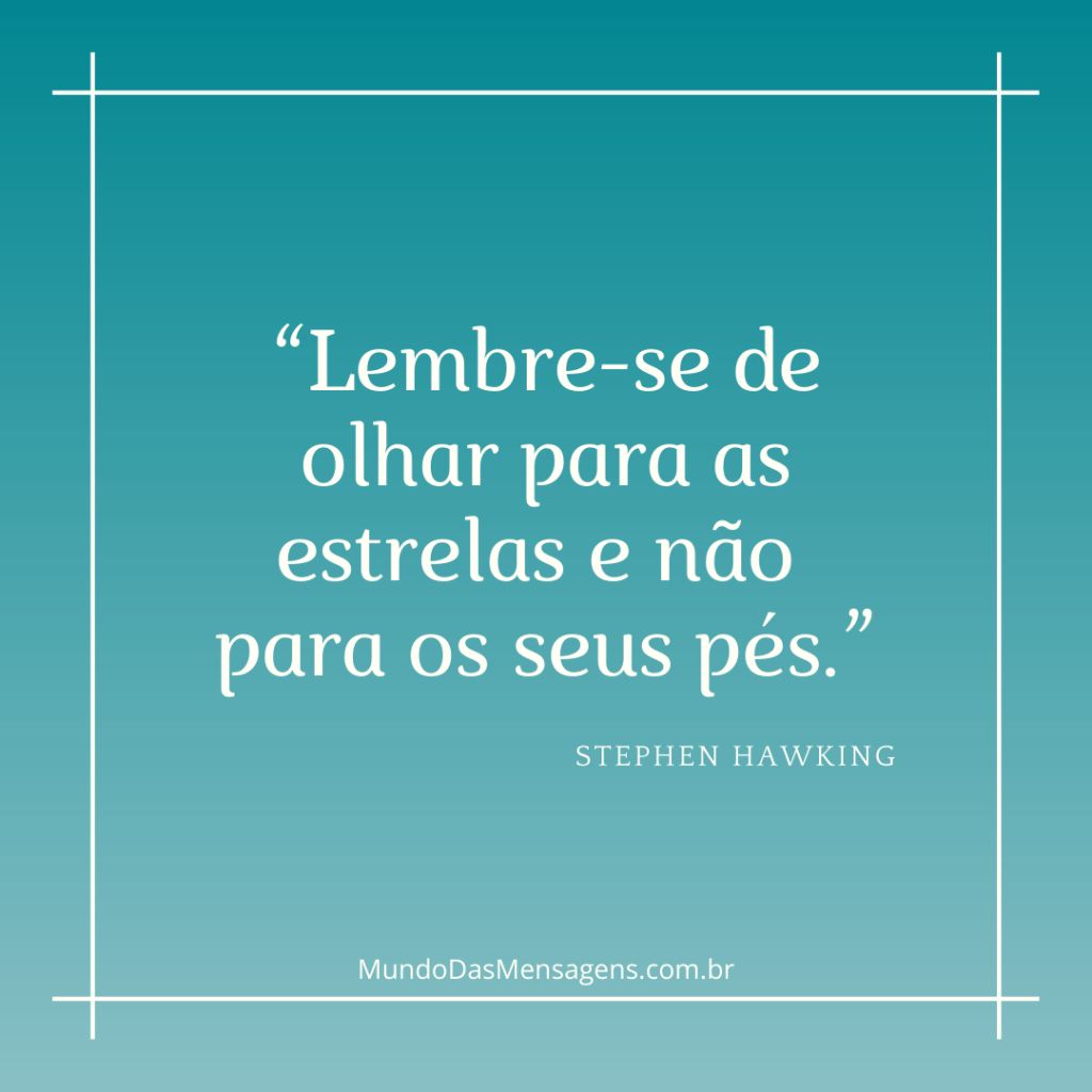 “Lembre-se de olhar para as estrelas e não para os seus pés.”