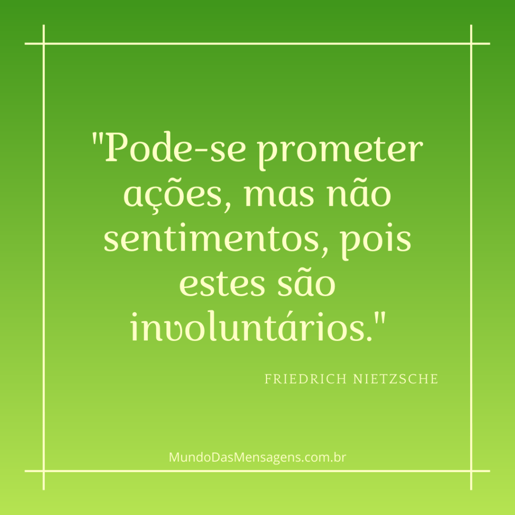 “Pode-se prometer ações, mas não sentimentos, pois estes são involuntários. Quem promete a alguém amá-lo sempre, ou odiá-lo sempre, ou ser-lhe sempre fiel, promete algo que não está em seu poder; mas o que pode perfeitamente prometer são aquelas ações que, na verdade, são geralmente as consequências do amor, do ódio, da fidelidade, mas que também podem emanar de outras razões, pois a uma ação conduzem diversos caminhos e motivos. A promessa de amar sempre alguém significa, portanto: enquanto eu te amar, manifestar-te-ei as ações do amor; se eu já não te amar, pois, não obstante, receberás para sempre de mim as mesmas ações, ainda que por outros motivos. De modo que a aparência de que o amor estaria inalterado e continuaria sendo o mesmo permanece na cabeça das outras pessoas. Promete-se, por conseguinte, a persistência da aparência do amor, quando, sem ilusão, se jura a alguém amor eterno.”