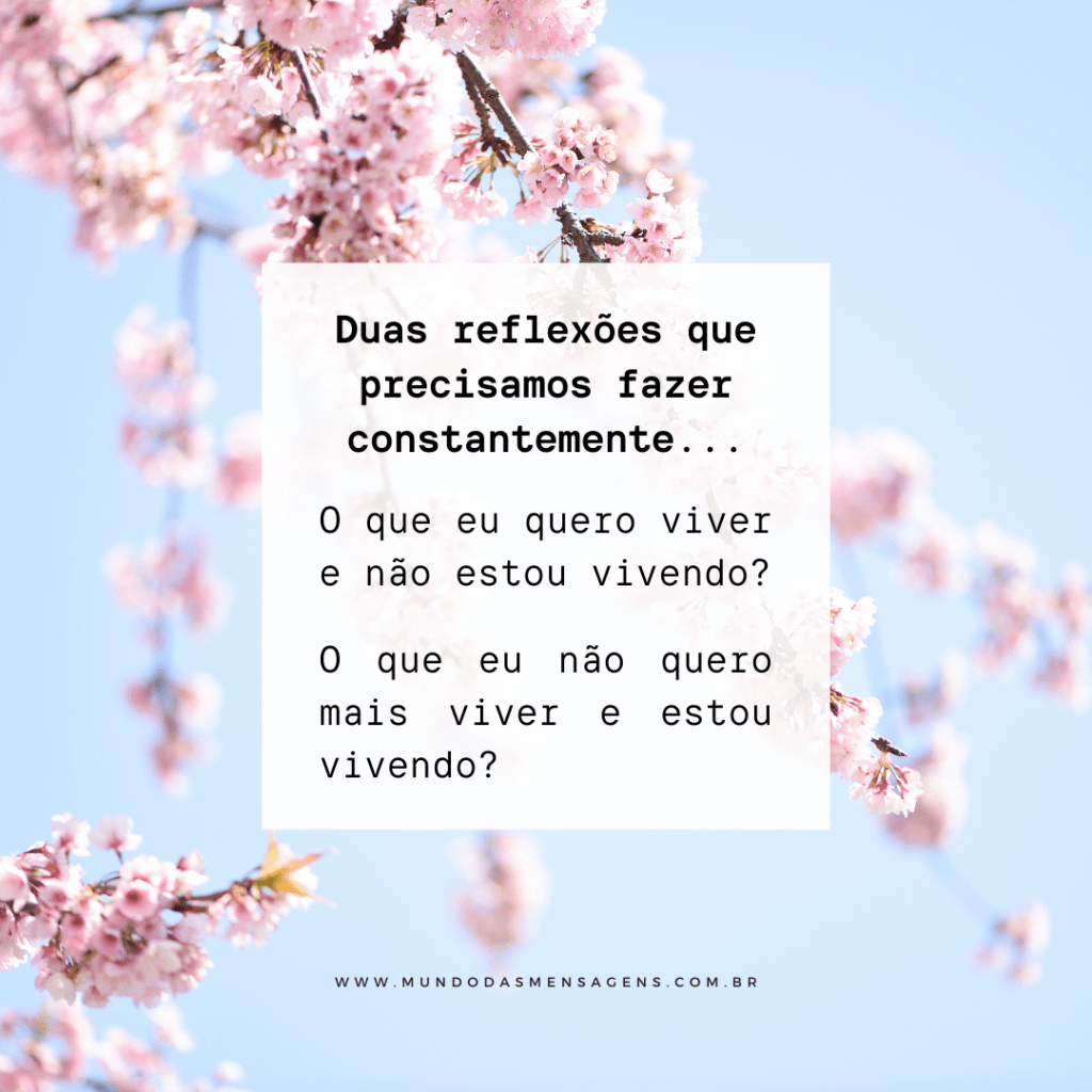 Reflexões Duas reflexões que precisamos fazer constantemente: O que eu quero viver e não estou vivendo? O que eu não quero viver e estou vivendo? Compartilhe essa mensagem com alguém especial: Clique para compartilhar no WhatsApp(abre em nova janela) WhatsApp Clique para compartilhar no Facebook(abre em nova janela) Facebook Clique para compartilhar no X(abre em nova janela) 18+ Clique para compartilhar no Pinterest(abre em nova janela) Pinterest Clique para compartilhar no Telegram(abre em nova janela) Telegram Clique para compartilhar no LinkedIn(abre em nova janela) LinkedIn Clique para compartilhar no Tumblr(abre em nova janela) Tumblr Clique para enviar um link por e-mail para um amigo(abre em nova janela) E-mail Clique para imprimir(abre em nova janela) Imprimir Curtir Carregando... Relacionado