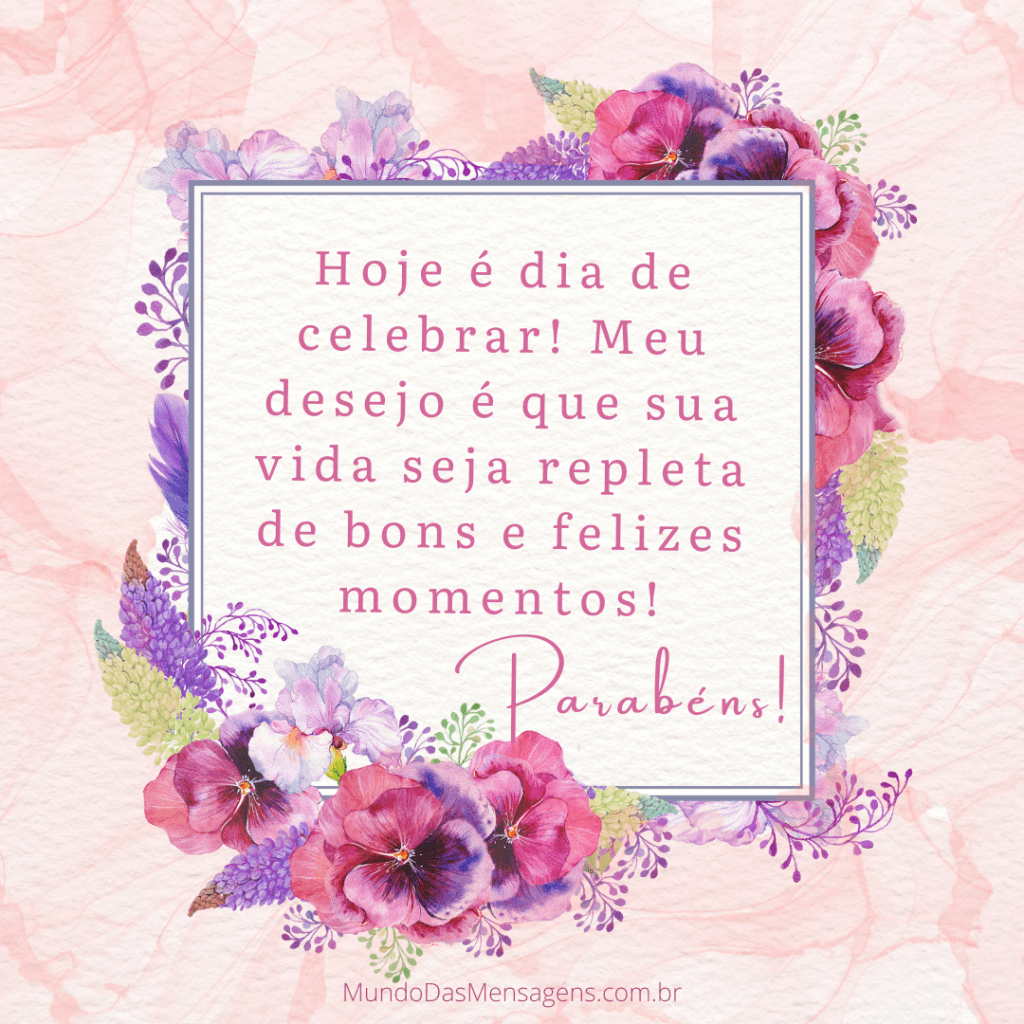 Hoje é dia de celebrar! Meu desejo é que sua vida seja repleta de bons e felizes momentos! Parabéns!