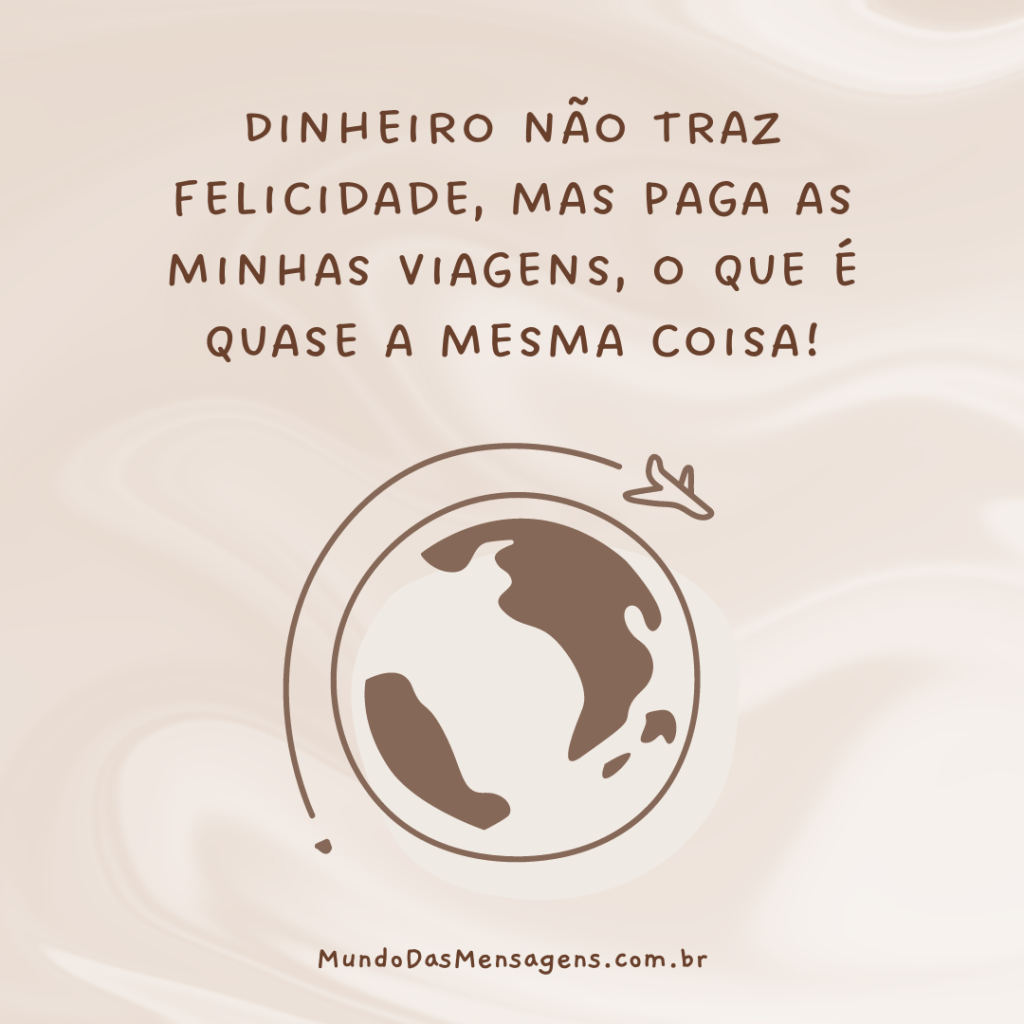 Dinheiro não traz felicidade, mas paga as minhas viagens, o que é quase a mesma coisa!