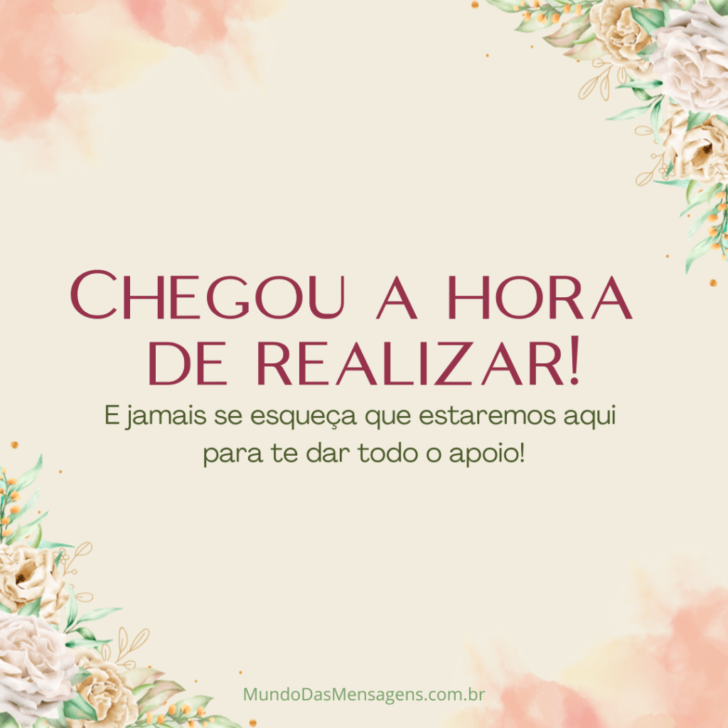 Chegou a hora de realizar! E jamais se esqueça que estaremos aqui para te dar todo o apoio!