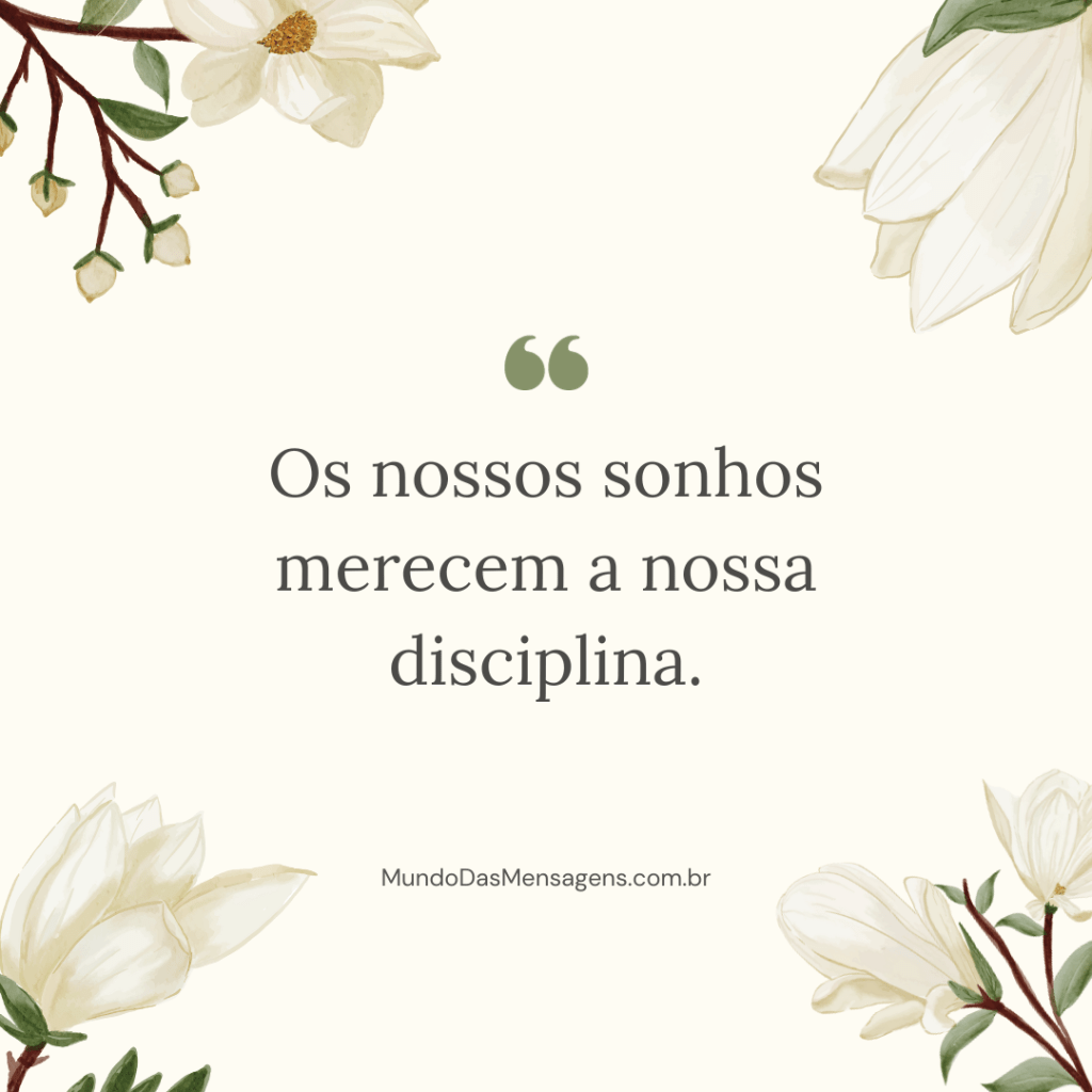 “Os nossos sonhos merecem a nossa disciplina.” (Autor desconhecido)