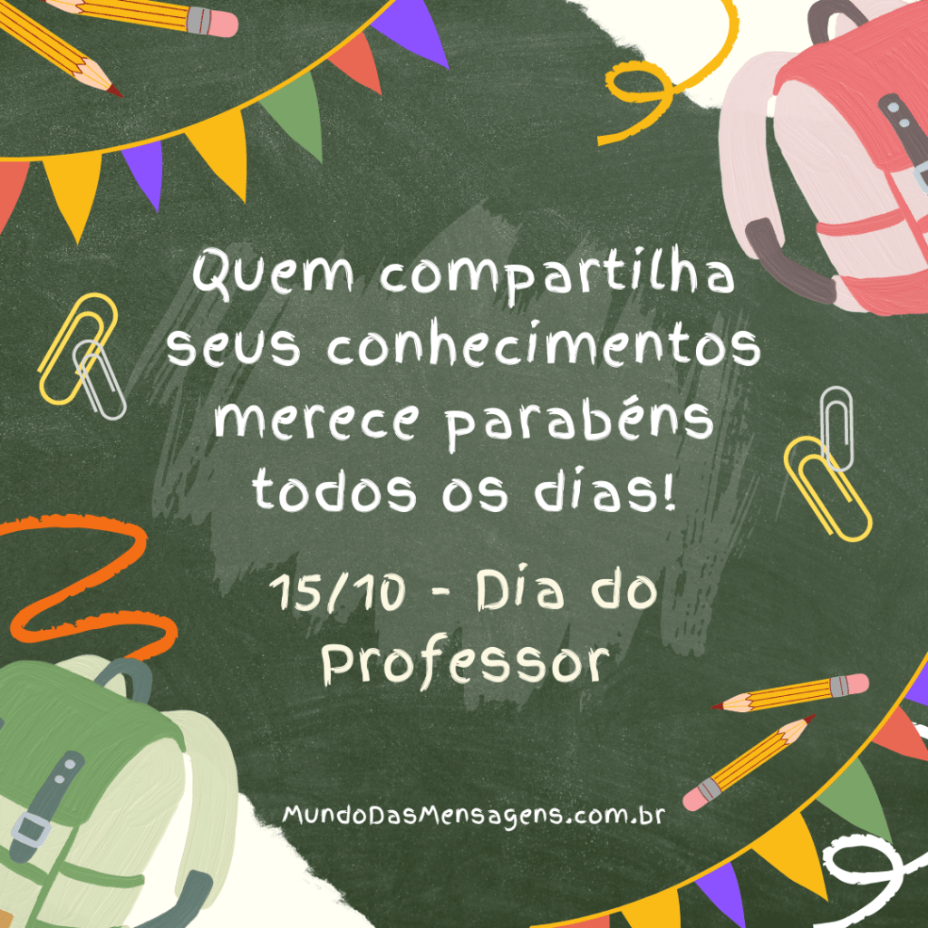 Hoje, 15 de outubro, Dia do Professor, fazemos essa homenagem a todos os mestres por quem sentimos imensa gratidão. Que essa mensagem curta traduza os nossos parabéns a cada professor e professora que se dedica ao nobre ofício de ensinar.